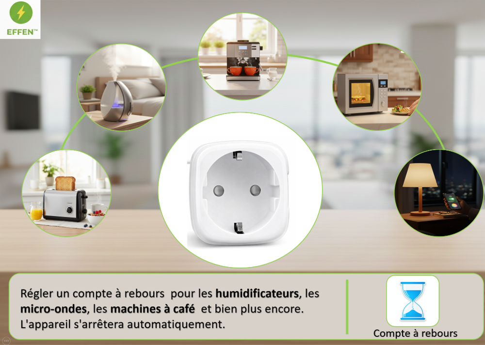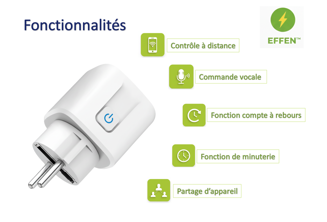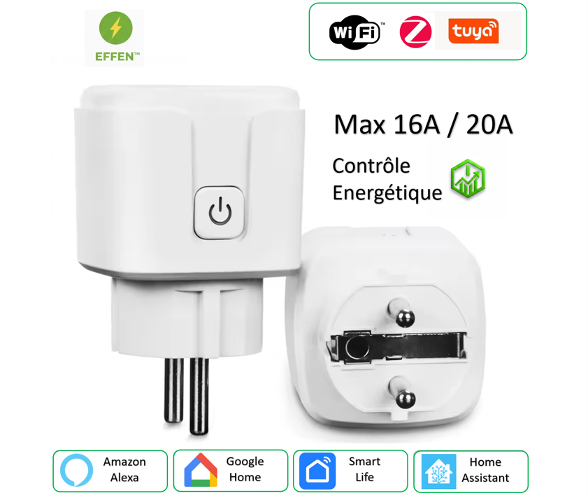 Prise Connectée WiFi Smart / Zigbee Contrôle Vocal Alexa & Google Home • Économies d'Énergie – EFFEN™